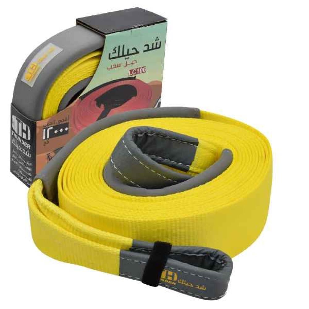 حبل سحب سيارات شديد المرونة قوة سحب 12 طن وطول 6 امتار وسماكة 75 ملم.