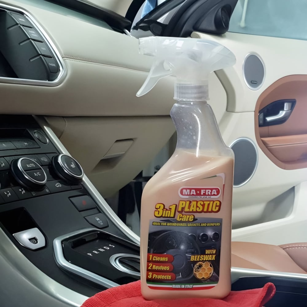 احصل على معالج البلاستيك من مافرا 3 في 1 لتجعل ديكور سيارتك براق ومحمي وخالية من الروائح الكريهة. استخدمه بانتظام للحفاظ على جمال ومتانة البلاستيك في سيارتك.