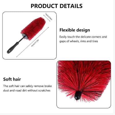 - ناعم وآمن: تتميز بشعيرات ناعمة ولينة تزيل غبار الفرامل وأوساخ الطريق بكل سهولة وأمان دون التسبب بأي خدوش، وهي آمنة تماماً على العجلات المطلية والمصقولة والمطلية بالكروم.